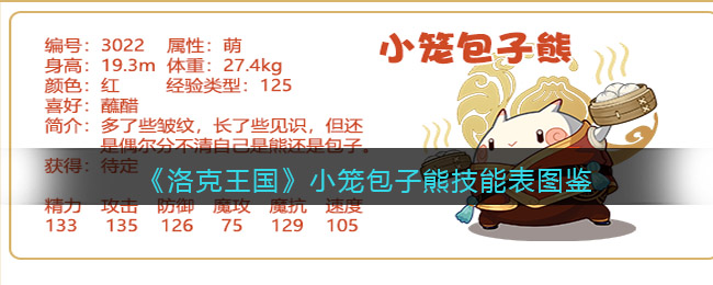 以上就是小编整理带来的《洛克王国》小笼包子熊技能表图鉴介绍,更多精彩内容,请点击关注易采游戏网,小编将持续为您更新!
