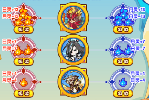 5、第二步:吸收灵气,这里稍微注意一下,只有四次吸收日月之灵的机会,会有一个随机性:每次日月之灵点数是固定几个随机的(暂时不清楚有几个固定值),如果四次之内没把日灵和月灵平衡到50点则失败,不过可以反复重置直至达成!重置冷却时间:3分钟。重置后日月之灵点数依旧是随机的,大家可以根据实际情况进行加减。