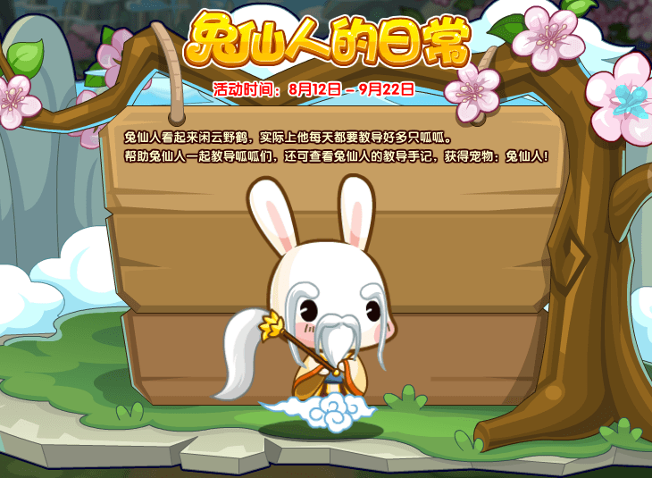 1、在兔仙人的日常玩法活动中玩家需要帮助兔仙人教导呱呱。