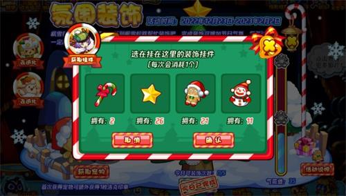 1.装饰圣诞树首先需要挑战圣诞,从而获取:手杖挂件、五角星挂件、姜饼人挂件、雪人挂件。