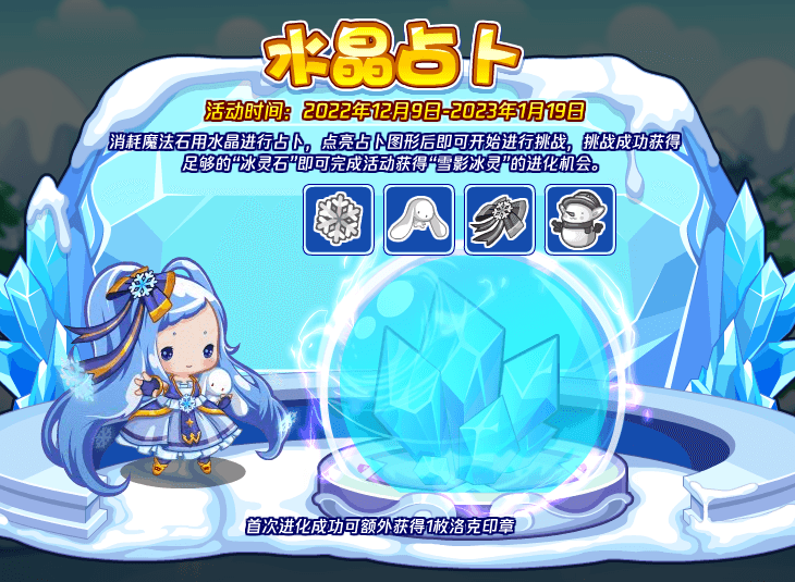 洛克王国游戏中雪影冰灵可以在水晶占卜活动中获得,消耗魔法石用水晶进行占卜,点亮占卜图形后即可开始进行挑战,挑战成功获得足够的“冰灵石”即可完成活动获得“雪影冰灵”的进化机会。下面易采游戏网小编就给大家带来了《洛克王国》雪影冰灵获取方法,感兴趣的速来围观吧!