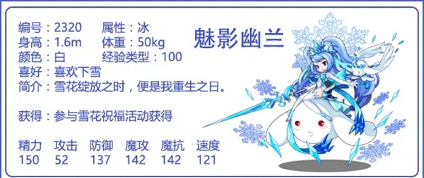 速度是和魅影幽兰一样的,整体魔攻低了12点,但是双抗高达145,精力也多了5点,雪影冰灵的整体收益较高。