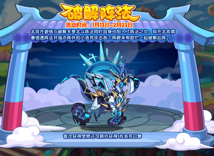 洛克王国北辰可以在明日上线的破解阵法活动中获得。北辰在参悟与破解天罡北斗阵同时自身也陷入了阵法之中。现在北辰需要悟透阵法并指点阵外的小洛克攻击各个阵眼来帮助它一起破解此阵。下面易采游戏网小编就给大家带来了《洛克王国》北辰获取方法介绍,感兴趣的速来围观吧!