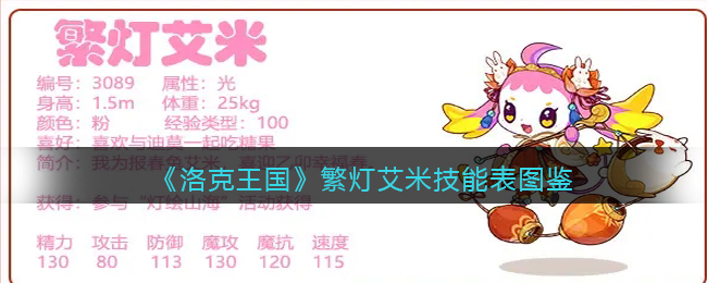 洛克王国游戏中繁灯艾米即将在本周五上线,这是艾米兔年皮肤,可通过灯绘山海活动获得。灯绘山海编号3089,是光属性的宠物,非常好看!下面易采游戏网小编就给大家带来了《洛克王国》繁灯艾米技能表图鉴,技能表种族值可以让大家快速了解这个宠物各项信息,感兴趣的速来围观吧!