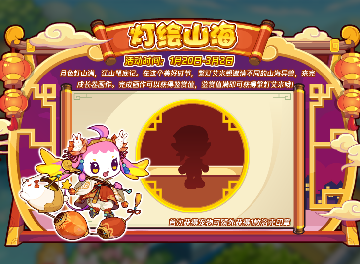 月色灯山满,江山笔底记。在这个美好时节,繁灯艾米想邀请不同的山海异兽,来完成长卷画作。完成画作可以获得鉴赏值,鉴赏值满即可获得繁灯艾米哦!