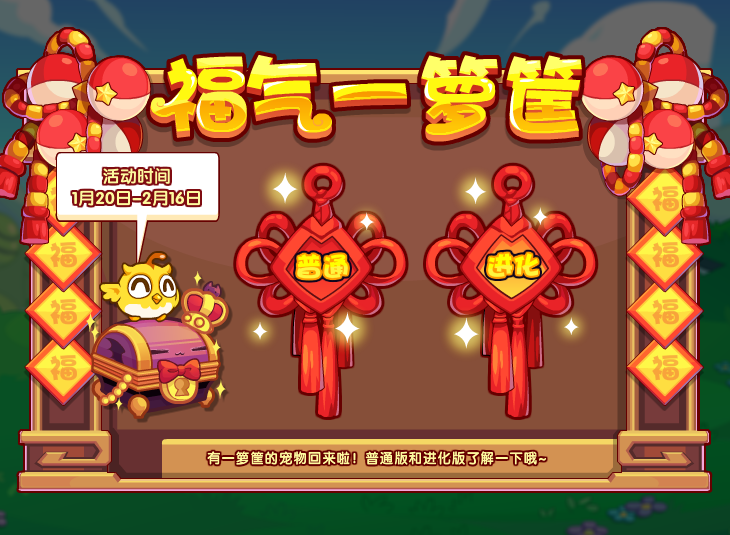 兔年大吉喜气临,迎宵呱呱准备了祈福箱,通过祈福获得“兔年祝福语”即可获得祈福点数用于兑换丰富的奖励和精灵王哦!