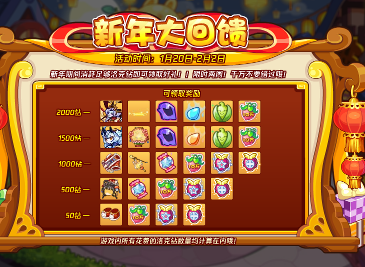 新年期间消耗足够洛克钻即可领取好礼!限时两周!千万不要错过哦!