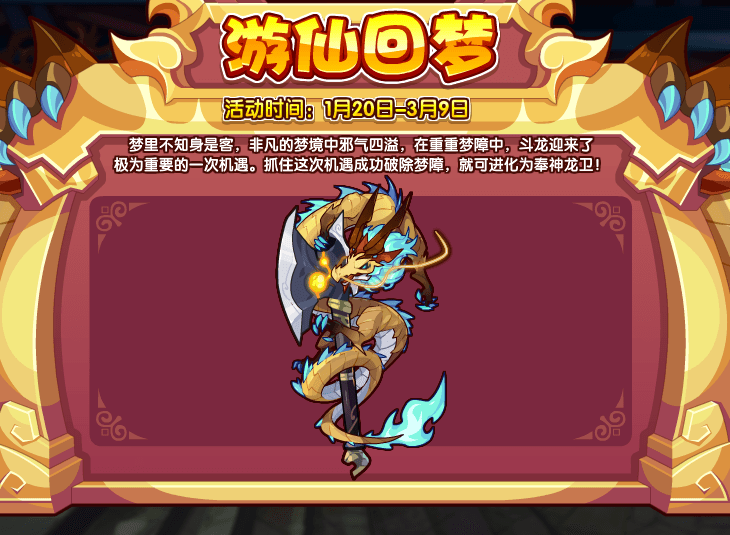 梦里不知身是客,非凡的梦境中邪气四溢,在重重梦障中,斗龙迎来了极为重要的一次机遇。抓住这次机遇成功破除梦障,即可进化为奉神龙卫!