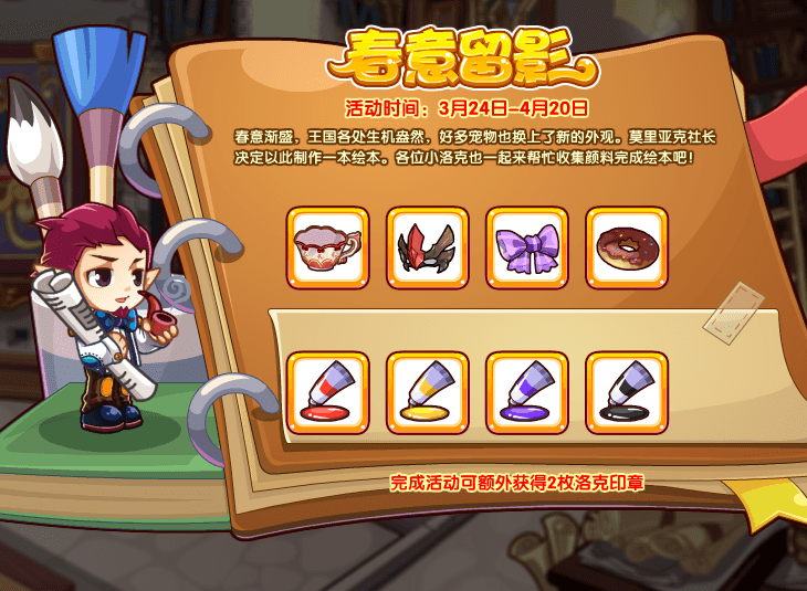 1、洛克王国春意留影活动就是宠物们准备换上新的外观,需要玩家一起来给它们补上绘本。