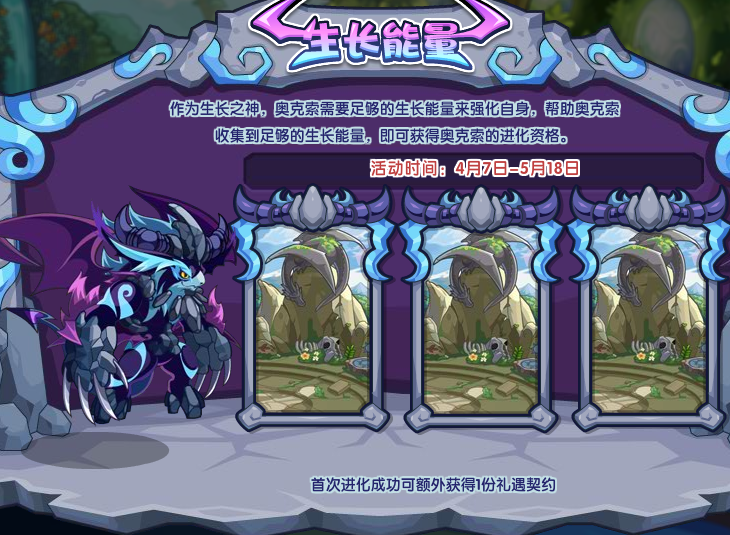 作为生长之神,奥克索需要足够的生长能量来强化自身,帮助奥克索收集到足够的生长能量,即可获得奥克索的进化资格。