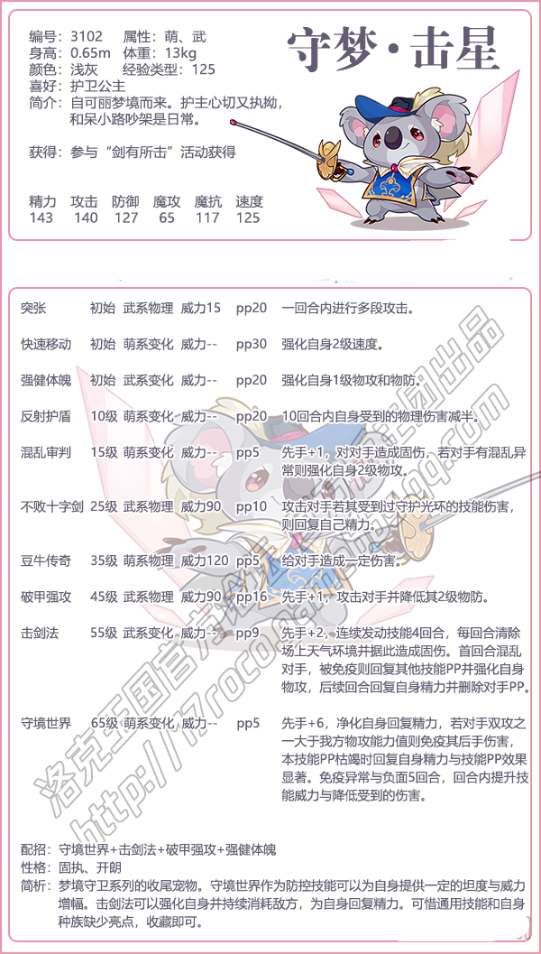 1、洛克王国守梦击星技能搭配守境世界+击剑法+破甲强攻+强健体魄