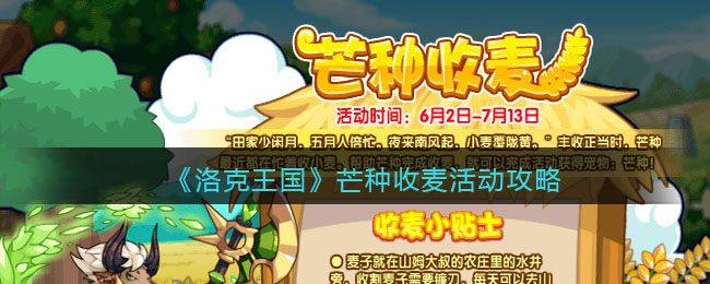 洛克王国芒种收麦活动今日上线, 芒种收麦活动需要玩家帮助芒种完成收麦,收麦过程中可能有宠物来捣乱。累计20次就可以领取宠物芒种,活动中,需要找山姆大叔用农作物置换镰刀。下面是小编给大家带来的《洛克王国》芒种收麦活动攻略,感兴趣的小伙伴们一起来看看吧。