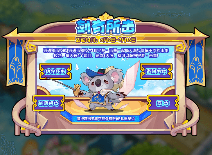 洛克王国剑有所击活动今日上线, 和守梦·击星一起每天潜心修炼不同的击剑技艺,每天有4个项目,完成3天后,就可以获得守梦·击星!下面是小编给大家带来的《洛克王国》剑有所击活动攻略,感兴趣的小伙伴们一起来看看吧。