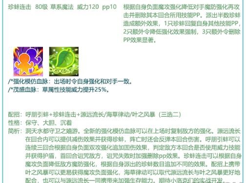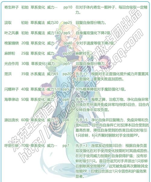 1、嬉游技能表如下,配招:呼朋引蚌+珍蚌连击+源远流长/海草律动/叶之风暴(三选二)