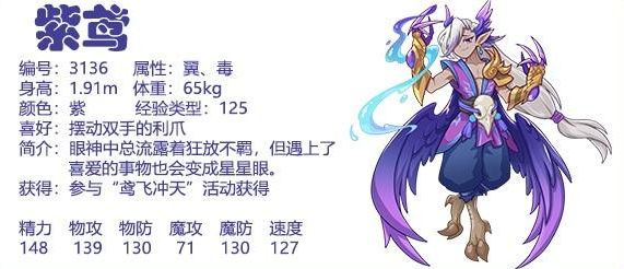 以上就是小编整理带来的洛克王国紫鸢介绍,更多相关游戏攻略,请关注易采游戏网!