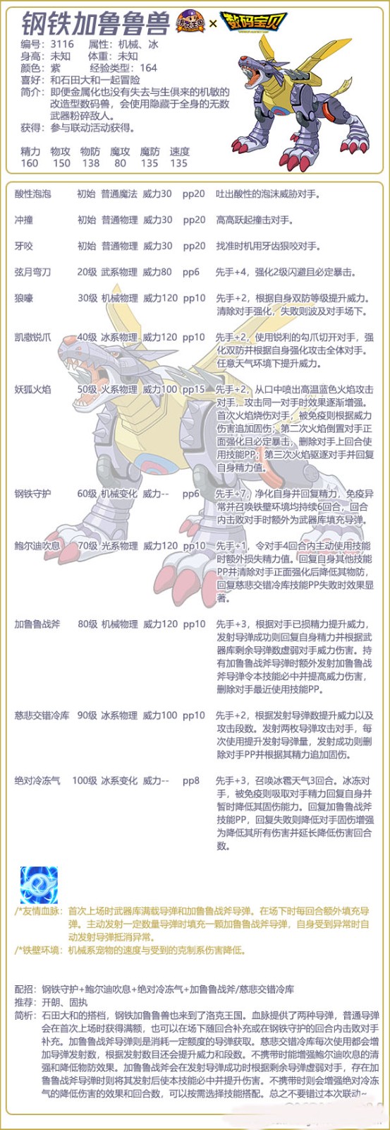 2、钢铁加鲁鲁兽是石田大和的搭档,钢铁加鲁鲁兽也来到了洛克王国。