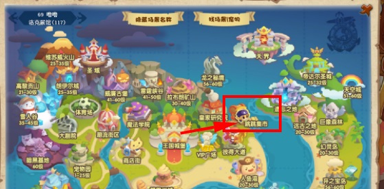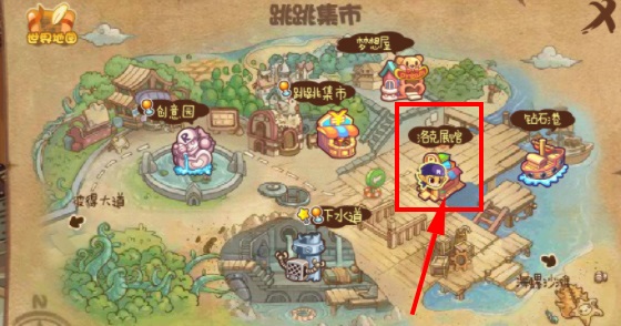 1.玩家们首先打开地图,在地图上找到跳跳市场并且点击他;
