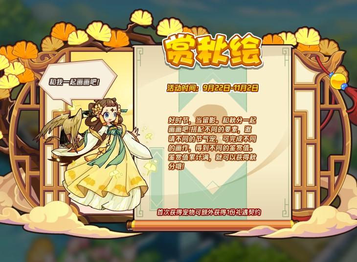 洛克王国赏秋绘秋分活动今日上线,进入微尘山谷可参与活动,活动需要大家挑选画作的一些构成:文案、画布、底色、邀请模特等,搭配不同鉴赏值不同。搭配不同的要素,邀请不同的节气宠,可完成不同的画作,得到不同的鉴赏值。鉴赏值累计满,就可以获得秋分哦!下面是小编给大家带来的《洛克王国》赏秋绘通关攻略,感兴趣的小伙伴们一起来看看吧。