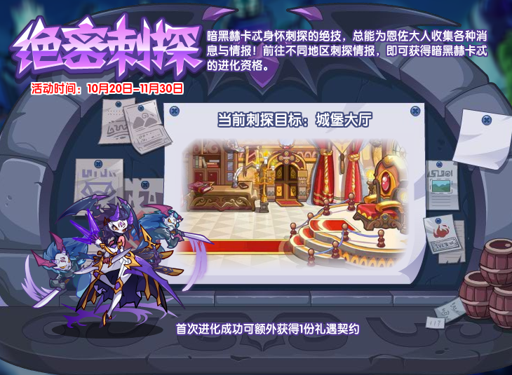 4.小洛克们可以根据自己的情况进行情报的刺探行动方式,累计收集记录9份情报,就可以解锁:暗黑赫卡特进化资格。