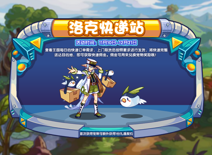 查看王国每日的快递订单需求,上门取货后按照要求进行发货,将快递完整送达目的地,即可获取快递佣金。佣金可用来兑换宠物奖励哦!