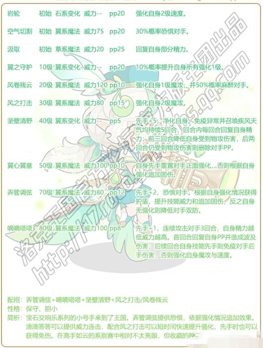 1、洛克王国青榄小号技能配招:弄管调弦+嘀嘀嗒嗒+坚壁清野+风之打击/风卷残云