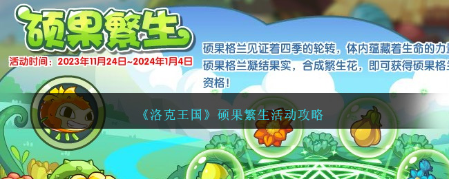 硕果繁生是洛克王国今日上线的活动,可以在西域果林地图中进入,硕果格兰见证着四季的轮转,体内蕴藏着生命的力量。帮助硕果格兰凝结果实,合成繁生花,即可获得硕果格兰的进化资格!下面是小编给大家带来的《洛克王国》硕果繁生活动攻略,感兴趣的小伙伴们一起来看看吧。