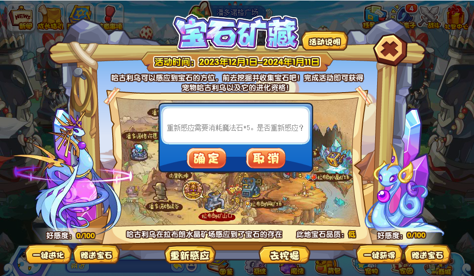 今天给大家带来了《洛克王国》宝石矿藏活动攻略分享,哈古利乌可以感应到宝石的方位,前去挖掘并收集宝石吧!完成活动即可获得宠物哈古利乌以及它的进化资格! 小洛克们需要点击“感应”按钮,找到前往挖掘,点击“去挖掘”可以直达场景。