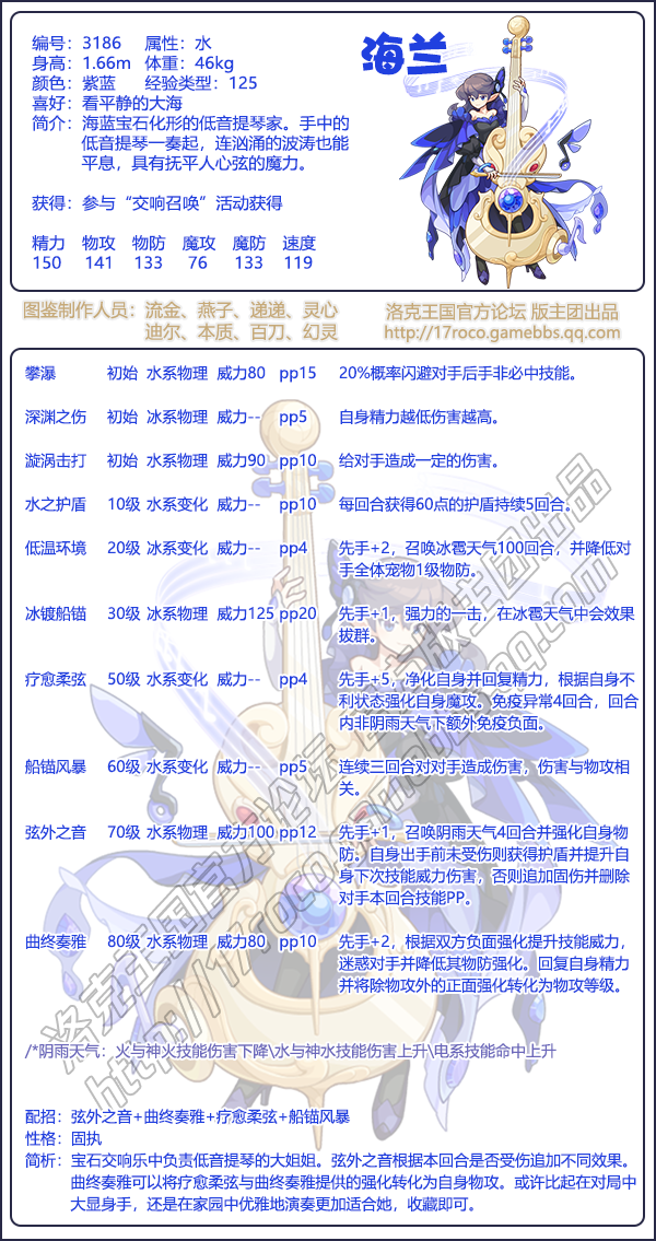 今日给大家带来了《洛克王国》海兰技能表图鉴分享,海兰是编号3186的物攻宠物,是宝石交响乐中负责低音提琴的大姐姐。下面分享技能表种族值可以让大家快速了解这个宠物各项信息,感兴趣的速来围观吧!