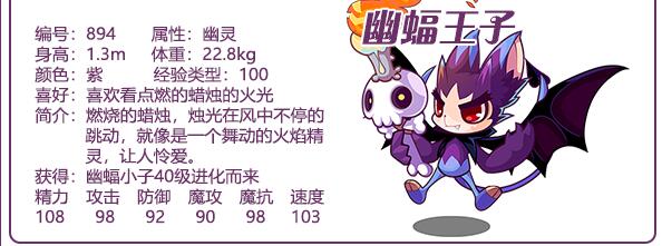 今日给大家带来了《洛克王国》幽蝠王子技能表图鉴分享,这是一个喜欢看点燃的蜡烛的火光的宠物。进化路线是:幽蝠宝宝→幽蝠小子→幽蝠王子→幽蝠公爵,下面分享技能表种族值可以让大家快速了解这个宠物各项信息,感兴趣的速来围观吧!
