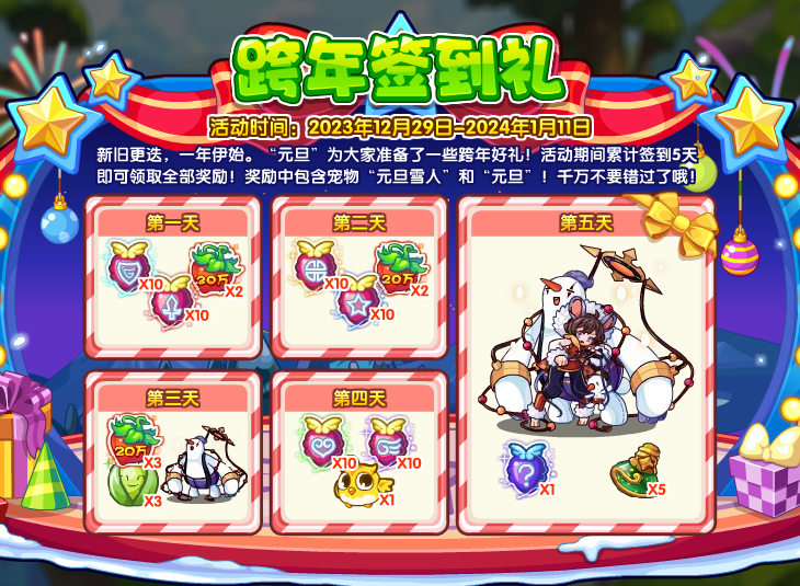 奖励中包含宠物“元旦雪人”和“元旦”!千万不要错过了哦!