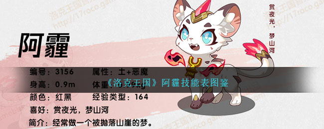 今日给大家带来了《洛克王国》阿霾技能表图鉴分享,阿霾是洛克王国中玄玉岛和奉神灵域里的奉神灵兽之一。经常做一个被抛落山崖的梦。进化路线是阿霾→角狮→浮罍斗狮→砾尊狂狮。下面分享技能表种族值可以让大家快速了解这个宠物各项信息,感兴趣的速来围观吧!