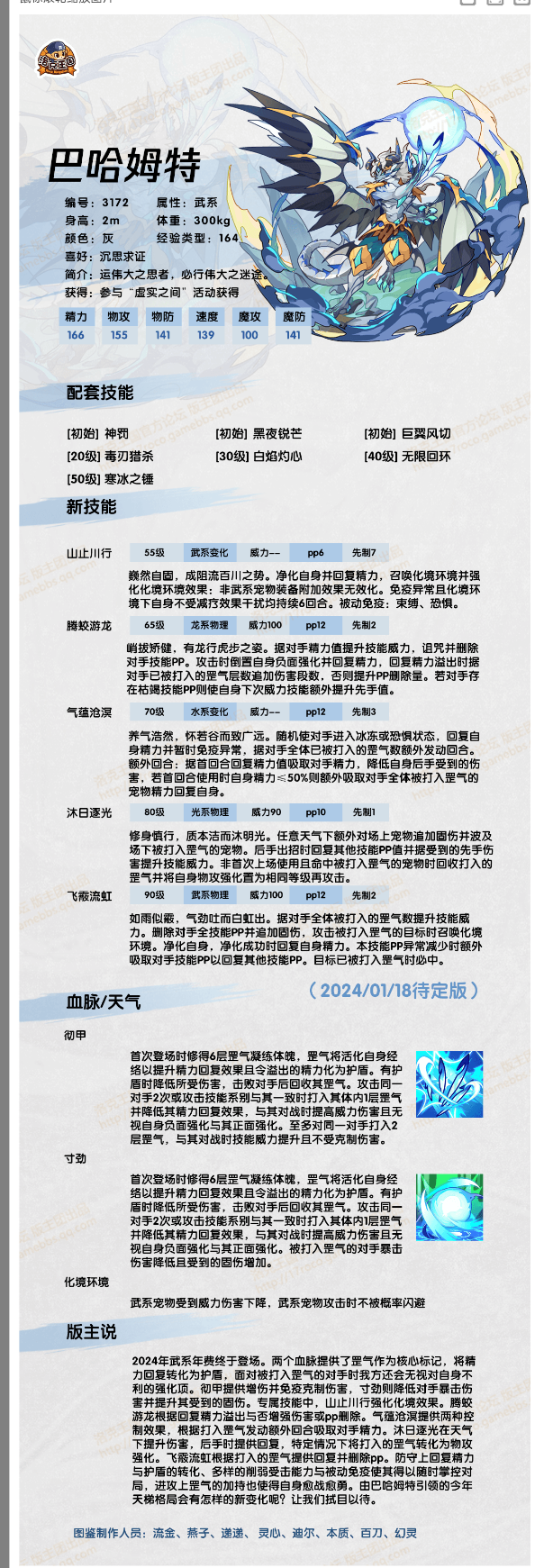 今日小编给大家带来了《洛克王国》巴哈姆特技能表图鉴分享,巴哈姆特是编号3172的2024年年费宠物,他是一只武系年费,巴哈姆特喜欢勘破谎言的迷雾,直面真相的本质。下面小编给大家分享一下技能表种族值帮助大家快速了解这个宠物各项信息,感兴趣的速来围观吧!