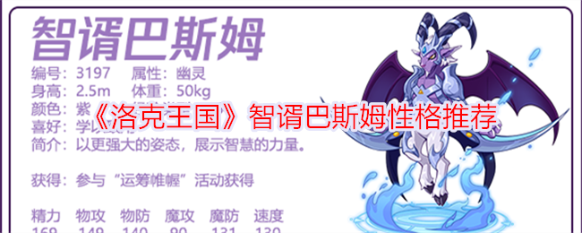 以上就是小编整理带来的《洛克王国》智谞巴斯姆性格推荐,更多相关内容,请点击关注易采游戏网!