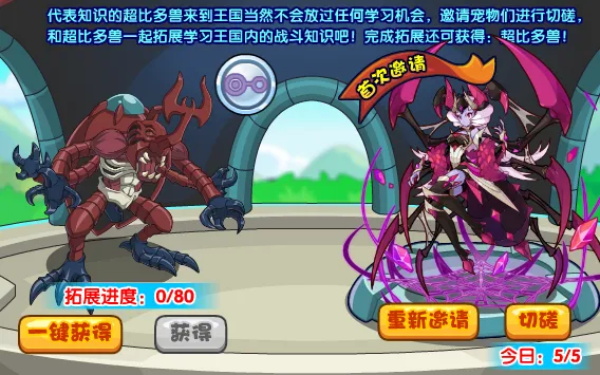 4.当拓展进度满80点,就可以召唤:超比多兽!一键购买:688洛克钻,首次获得宠物可以额外获得:知识徽章!