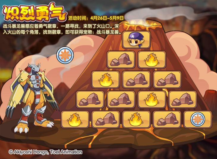 战斗暴龙兽可以在4月26日-5月9日维苏威火山上线的炽烈勇气活动获得。