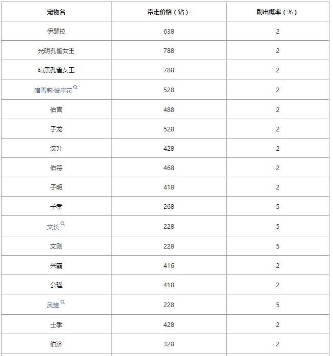 能召唤什么宠物?带走需要的洛克钻分别是多少,一起随小贝来看看吧!