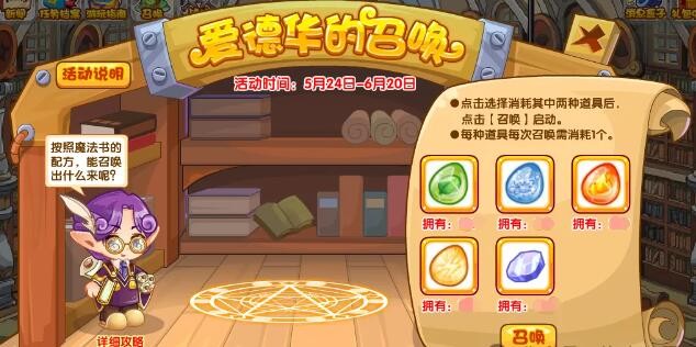 今天给大家带来了《洛克王国》爱德华的召唤攻略2024分享,使用木灵石、水灵石、火灵石、土灵石、魔法石的其中两种,每次消耗各一,可以召唤出不同的宠物来!想要了解本次有哪些宠物可以召唤及价格概率的可以来看看哦!