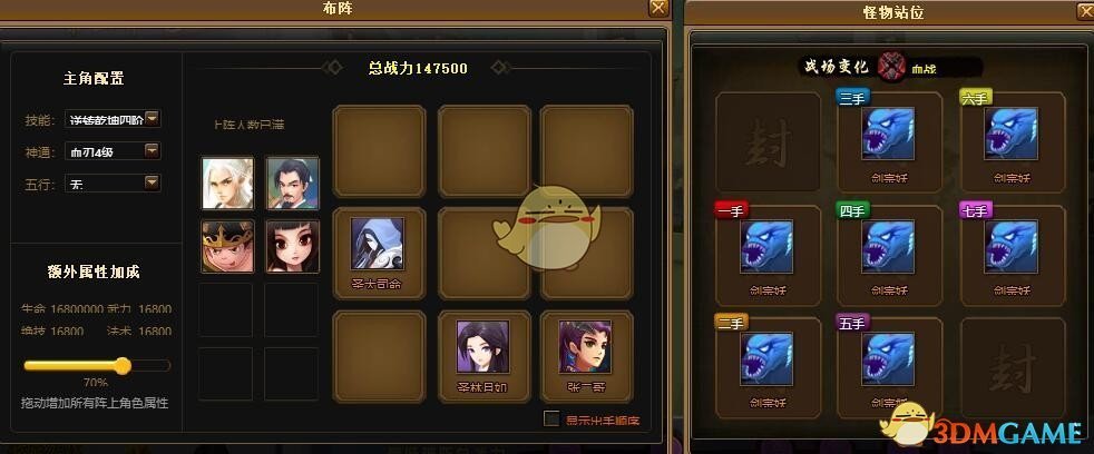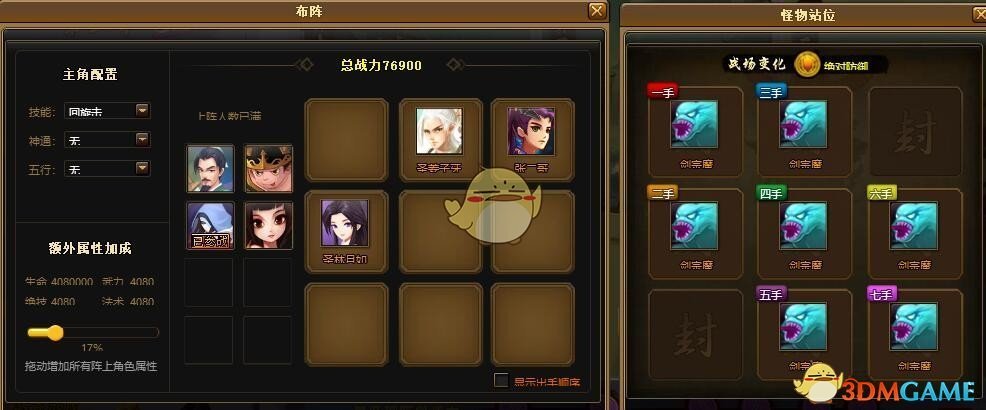 怪物3:这是本关的第二大难点!一是混乱,二是当前生命50%的护盾,这就是选酒鬼的原因。酒鬼免疫混乱,且第一回合大量的输出使所有怪血量大幅度降低,护盾值也会相应降低。又因战场变化为绝技无伤,所以还是得靠酒鬼的绝对伤害。