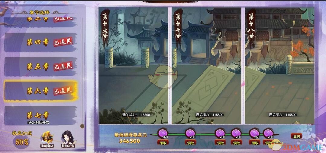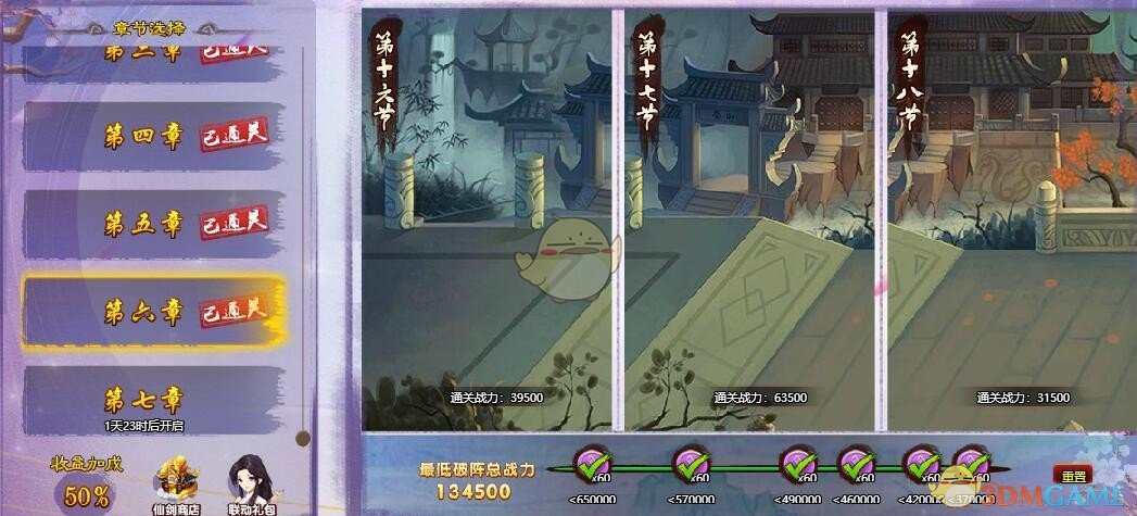第六章有三个小节,这一章很简单,战力拉满即可,无脑过,战力配置如下: