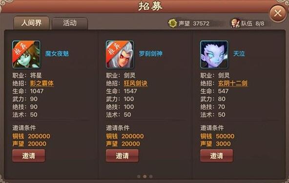 玩家可以通过客栈招募及各种活动获得自己喜爱的强力伙伴。当然游戏在之后也会更新更多的伙伴,让玩家可以体验到更多伙伴的风采。
