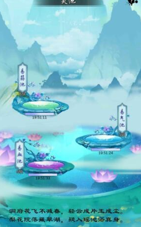 灵池分为三个部分,分别是易筋池,易血池以及易气池。在灵池之中浸泡修炼可以提升弟子对应的属性,并且永久加成弟子基础修炼速度,只是修炼所提升的能力等级上限不能超过灵池自身等级上限。