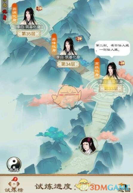 类似爬塔,可以获得极品灵石、丹药、法宝以及弟子,不能重复获取。