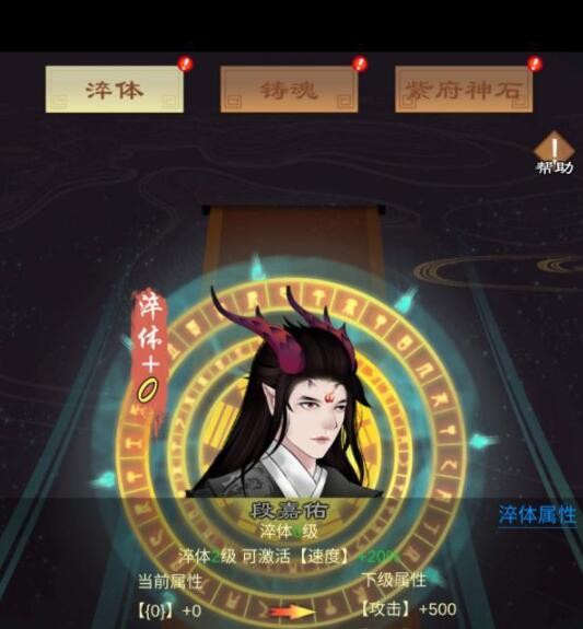 淬体可以类比为强化,主要使用淬体神血,到了高级之后还需要消耗同品阶的弟子,能够提升攻击、防御、气血数值;