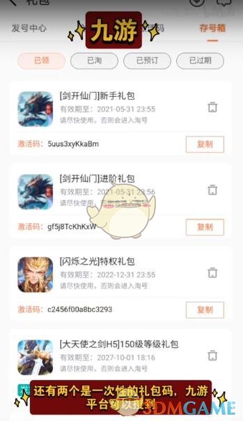 这是一个一次性礼包,九游平台就可以搜到,每个人的码应该是不同的,大家想领取可以自己去搜索一下!
