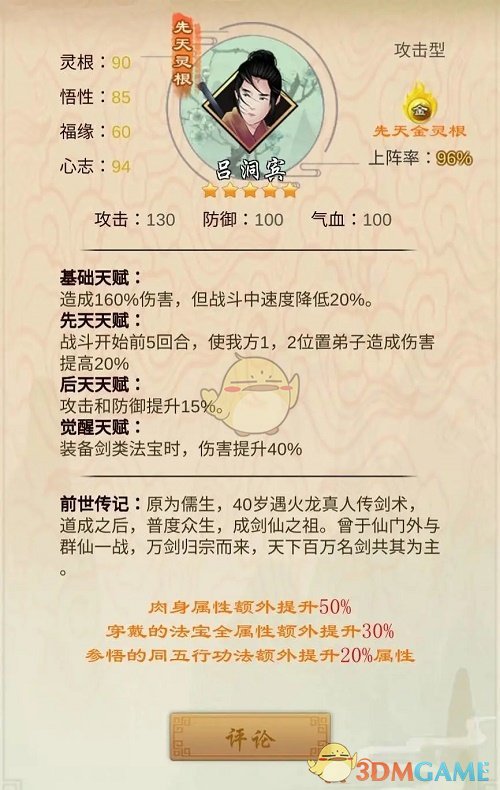 可以说他拥有全游戏中第二高加成的攻击伤害,但也可以说他是所有攻击型弟子中攻击伤害加成最低的。