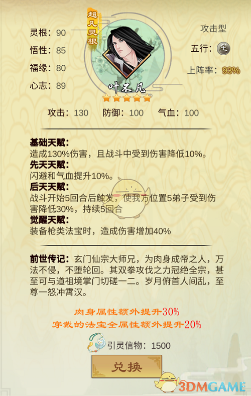 叶不凡可以造成130%的伤害,同时拥有10%的减伤,中规中矩。