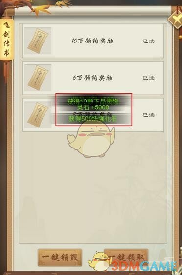 4、打开飞剑传书界面,点击一键领取按钮即可领取奖励了!