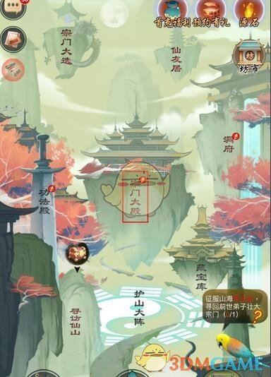 3、进入宗门大殿后,点击飞剑传书