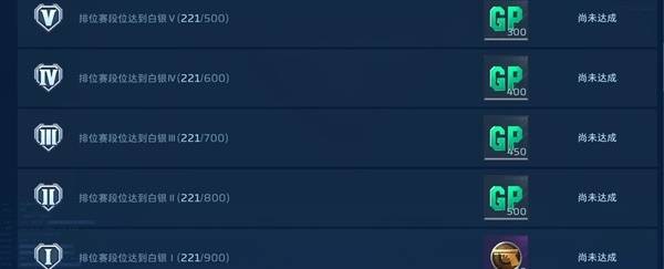 白银阶段也是五个小段位,一共可以获得1650GP点以及50荣誉点的奖励。