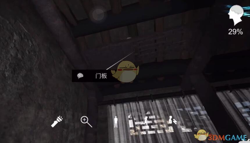 线索详情:房梁上架着一块门板。它一定是用什么方法放上去的。